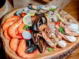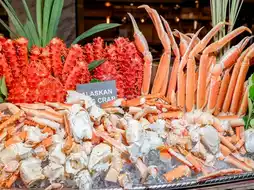 Feast on Alaskan king crab, snow crab, blue crab, along with a range of seafood like rock lobster, river prawns, oysters, mussels, and more—all on ice and replenished continuously.