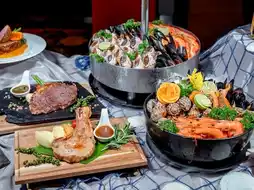 Guests rave about the Seafood Unlimited Dinner Buffet, which runs every Thursday to Saturday evening. Highlights include steamed crab (with herbal, curry, or garlic-pepper seasonings), seafood on ice, grilled river prawns, sashimi, wagyu sushi, steaks, and more—available over a generous four-hour window.