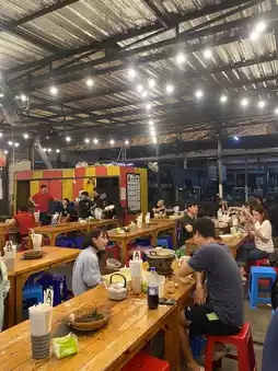 🔥🐷 Sergeant Woo Pork BBQ at Major Ratchayothin is a must-try for pork barbecue lovers! 🥓🍲 The atmosphere is like a fun group of friends 🥳🍻 with a full selection of pork, squid, shrimp, crab, and seafood 🦑🦐🦀. The fresh ingredients are grilled yourself and dipped in delicious sauces 🌶️🥢. It's absolutely amazing! 💥