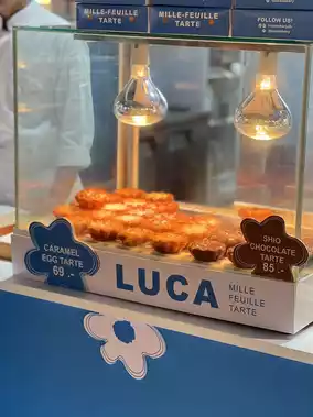 Don't miss out, bakery lovers! Luga Egg Tart, a renowned egg tart shop that bakes fresh daily. 🧡 The highlight is the thin, crispy tart crust, incredibly fragrant with butter, contrasting with the smooth, soft egg custard filling, perfectly sweet. The first bite melts in your mouth, making it impossible to stop. 🍯