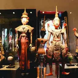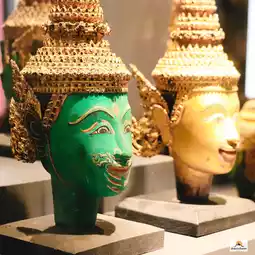 This important building during the reign of King Rama I was built as the royal audience hall for royal proceedings and various ceremonies. It is now part of the National Museum, Bangkok. It displays 32 heads of teachers, arranged according to the rank of each piece. This room also displays the Royal Puppets, a type of puppetry performed by one puppeteer. The puppets are beautifully dressed to resemble real dancers.