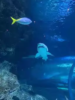 As soon as you step inside, you'll be greeted by a large aquarium 🐠 and a variety of colorful marine life. A must-see highlight is the 360-degree underwater tunnel 🌌, where you can walk through and see sharks 🦈, rays 🐡, and schools of fish swimming above you. It truly feels like you're walking in the middle of the ocean! 🌊