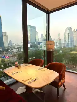 Through the glass windows, the panoramic view of Bangkok's skyline and the greenery of Lumpini Park spread out before us, making us feel like we were in a truly extraordinary place.
