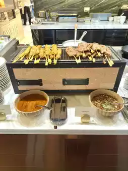 Liveliness and a Diverse Selection: Approximately 80 menu items lined the counter, featuring a diverse selection of Japanese, Western, Chinese, and Thai cuisines. Fresh tom yum noodles and satay (Thai-style grilled skewers) were prepared right before your eyes in the live kitchen. Since it was early in the morning and there weren't many customers, they were especially attentive. The taste was absolutely perfect! Everything was delicious. It was truly an exceptional breakfast.