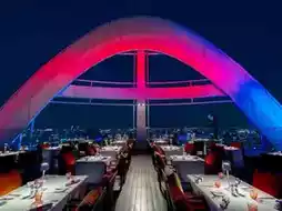 Feast your eyes on the breathtaking ambiance of Red Sky, a premier rooftop dining destination atop Centara Grand & Bangkok Convention Centre at CentralWorld. Stylish, elevated, and scenic—this is one of Bangkok’s most sought-after spots for dinner with a view. 360° Cityscape Views & Elegant Design. Perched on the 55th floor, Red Sky offers panoramic city views that shine especially at sunset and into the evening. The design blends sleek contemporary styling with intriguing architectural arches that glow at night. Exceptional Cuisine by Chef Luca Russo. The kitchen is helmed by Chef Luca Russo, whose impressive culinary background includes Michelin-starred Italian and Spanish establishments. His menu strikes a sophisticated balance between European fine dining and creative indulgence—highlighted dishes include Hokkaido scallops, A4 wagyu sirloin, surf & turf combinations, and Thai-inspired creations like Klong Phai chicken.