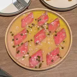 🍽️ Tuna Crudo: This newest addition features thinly sliced fresh tuna lightly seasoned and drizzled with fragrant olive oil for a tangy and slightly salty flavor that pairs perfectly with pickled capers.