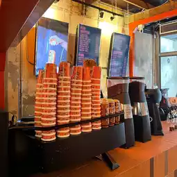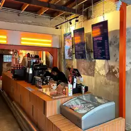 Today, we're featuring LOCAL BOYS COFFEE on Song Wat Road. I couldn't resist the hype, so I had to visit. But I was captivated by this cafe's chic photo-taking spots. It's a delight to take photos. The interior is decorated in orange tones and beautifully lit. Don't miss this trend if you're a fan of this style. The coffee drinks are a must-try. They're absolutely delicious, served in ice-cold cans, perfect for enhancing the flavor.