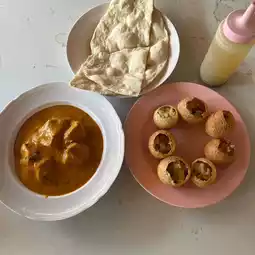 - Butter chicken with plain naan: This is incredibly delicious. I highly recommend ordering it. It's salty, rich, and full of spices. It's the best paired with the naan bread. The dough is soft and chewy. The restaurant bakes it fresh, dish by dish.