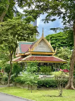 Whether you come at dawn when joggers circle the paths, or at dusk when the golden light softens the skyline, the pavilion adds a touch of cultural charm to Bangkok’s beloved green space.