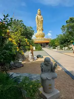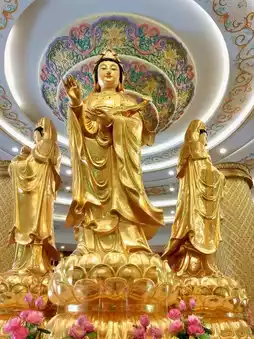🌿This stunning temple boasts a large golden Guanyin statue standing atop the temple building, standing majestically and visible from afar.