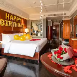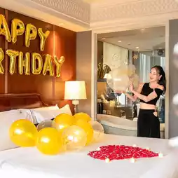 🛌 Our room, the Dowadueng Corner King, is a 39 sq.m. corner room with a city view. The room is beautifully decorated and well-proportioned. It's fully equipped with amenities and a classic and romantic atmosphere. This time, we visited with a birthday theme, which the hotel offered in its Birthday Package. The decorations were stunning and spectacular. We were impressed from the moment we stepped inside, with attention to every detail. We highly recommend you experience it for yourself. 💕