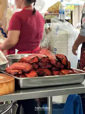 #GetDiscountsWithoutLuck Anyone living near Ram Intra Km. 8, Soi Khubon, is sure to know this restaurant. This roast pork and crispy pork rice and noodle shop is always packed with customers. If you go around lunchtime, expect a bit of a wait, as there are diners, takeout orders, and delivery options.