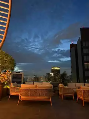 Located on the 34th floor of the Intercontinental Bangkok hotel, this rooftop bar offers a stunning view and exquisite interior design. Visiting before sunset enhances the experience with even more breathtaking scenery. Guests can choose between bar seating and outdoor table seating. The staff are friendly, and the menu is filled with delicious options. The bar is popular among international visitors, and parking is conveniently available at the hotel.