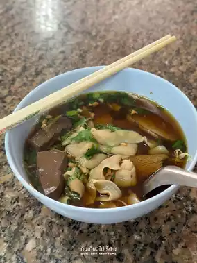 I tried the duck noodle soup. If you don't order anything else, you get meat and blood for 70 baht. But since I wanted duck intestines as well, it was 100 baht per bowl. I won't mention the price, since I don't usually eat duck noodles. Overall, it was okay. The soup wasn't very rich, perhaps because I went early. The intestines were crunchy and generous, with large pieces of duck meat cut into bite-sized pieces. They also gave me several pieces of blood. I was completely stuffed.