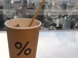 The Arabica store on the 55th floor is nestled in front of high windows overlooking the stunning skyline. % Arabica can be seen from afar in the lobby. Chemex shards cascade over the counter, reflecting against the softly lit ceiling. Enjoy the refreshing aroma of coffee while taking in the panoramic views of Bangkok.
