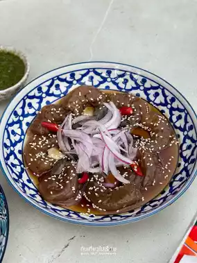 The restaurant is located in a slightly awkward location, with seating on the side of the road, more like street food than you'd expect. Taking out orders isn't as satisfying. We arrived at 4 PM and saw quite a few customers, but it took a while to get a table. (I checked their Facebook page and found they also have a branch on Ratchawat Road, with seating in another shophouse. It's fantastic!)