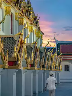 Situated on the banks of the Chao Phraya River, Bangkok's Grand Palace stands like a frozen golden legend. The gilded roof gleams in the sunlight, while its spires and reliefs tell the stories of past dynasties. Every breath reveals the majesty of Thai royalty and the depth of Buddhist culture.