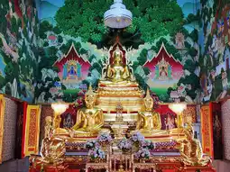The temple also features a large, bell-shaped octagonal pagoda, enshrining the Buddha's relics. The Thai-style Vihara of Luang Pu Phon houses the Phra Buddha Chinnarat and several other Buddha images.