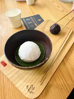 Escape the hustle and bustle of Sukhumvit 49 and step into "Peace Oriental Teahouse," a tranquil spot for tea lovers. The minimalist Japanese atmosphere, with its wooden tones, tatami mats, and bar area, exudes a simple yet profound feeling. A highlight I tried was the Matcha High Firing, a premium matcha that's roasted over high heat, giving it a rich, roasted aroma. The flavor is deep and rich, with hints of nutty and dark cocoa. The delicate finish is perfect for true matcha lovers. Next up was the Matcha Coconut Ice Cream, a rich flavor contrasted with the smooth coconut flavor. It's served with sweet, chewy black sticky rice, creating a perfect combination.
