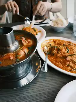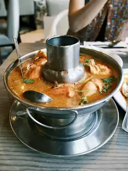 The tom yum goong combines the flavors of lemongrass and large, flavorful shrimp with just the right amount of acidity for a delicious, three-in-one flavor experience that's sure to leave you sated.