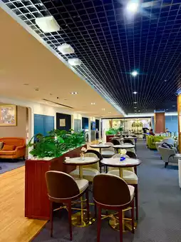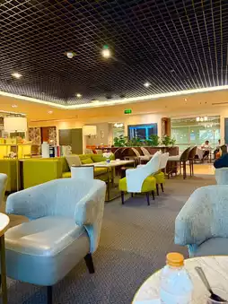 🌟 The highlight is the peaceful atmosphere, with both work and chill spots, overlooking the airport. 🛩️ Perfect for both business travelers and travelers looking to rest before their flight.