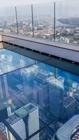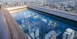Visiting Mahanakorn offers a 360-degree panoramic view of Bangkok from the country's highest observation deck. Enjoy the thrill of a giant glass floor on the 78th floor and the fastest elevator in Southeast Asia. Conveniently accessible via the BTS Chong Nonsi station, the building offers a variety of photo opportunities, as well as shops and bars on the top. The thrill of walking on the glass floor at Mahanakorn comes from the sensation of floating 310 meters in mid-air, overlooking Bangkok and the cars below through the sturdy, clear glass. Walking on the glass floor requires wearing shoe covers and removing any items that might damage the glass for safety. This thrilling, beautiful, and exciting experience is perfect for those seeking a unique perspective on the city. Your photo on the glass floor of Mahanakorn is of you standing on the glass tray of the Mahanakorn SkyWalk, located on the 78th floor. This glass floor offers panoramic views of Bangkok. From a bird's-eye view of 310 meters, your friends will definitely want to check in.