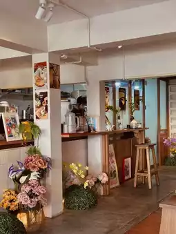 The cafe has a decent amount of seating on both the first and second floors. They offer a selection of coffee and non-coffee drinks, as well as desserts and savory options.