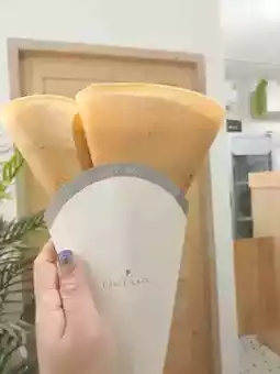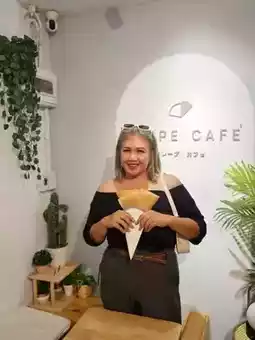 Crepe Cafe Sammakorn is another place we frequent. We always come here for our crepes whenever we have free time. Personally, I love their crepes. They stay crispy for a long time, and they're fragrant with real butter and fresh milk, no water added. The flavors are well-balanced. They offer both savory and sweet fillings, such as the recommended ones: Pan-fried Egg, Spinach Four Cheese, Foi Thong Banana, and Nutella. The fillings are dense, but the crepes are consistently crispy. From personal experience, I once had a crepe in the evening and couldn't finish it. I took it home the next day, and the crepes were still crispy. I was very impressed, and it was a hit with crepe lovers. As for the drinks, I like the sodas. They're not too sweet, and they pair perfectly with the crepes, cutting the richness. If you're passing through Sammakorn Village, be sure to stop by and give them a try. The shop is located right across from Sammakorn Lake.