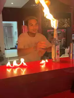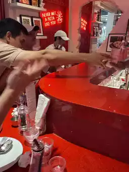 Show: While you're eating pizza, there's a live show with drinks and firework lighting.