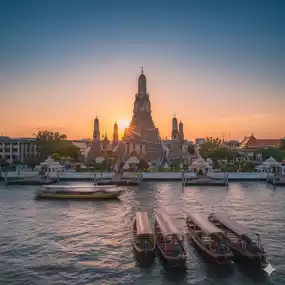 "A temple where the morning light shines like you've stepped out of a postcard!" The majestic prang on the banks of the Chao Phraya River—for those who want premium, ancient-style photos, come early.
