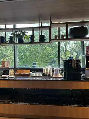 The lounge, available to guests, offers all-you-can-drink lattes and coffee at any time.✨ (They even had Ritz!)