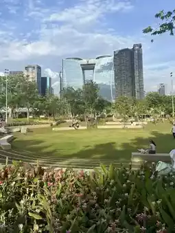 📍 As you step into the park, you'll be greeted by a tranquil atmosphere surrounded by a variety of trees, including large shade-providing ones and vibrant flowering plants that bloom year-round.