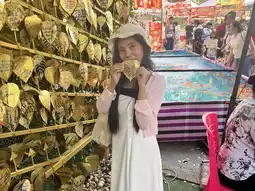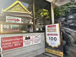 Upon arriving, you'll find a variety of shops and various merit-making activities. Walk straight to the entrance, and you'll need to climb the stairs to pay your respects. Thais don't need to buy a ticket; foreigners can go directly up. There are 344 steps, and you can enjoy the beautiful scenery along the side, lined with trees. Once you reach the top, you can pay your respects to the Phra Borommaphat, or Phu Khao Thong, the symbol of Wat Saket. King Rama III commissioned the construction of this sacred site. After your worship, you can walk around the Phu Khao Thong for panoramic views of Bangkok and stunning photo opportunities.