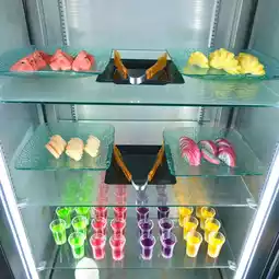 🍣 There's a huge selection of sushi and sashimi, including the Royal Sashimi Set. A collection of delicious items: foie gras sushi, eel foie gras sushi, salmon foie gras sushi, akaebi yuzu sushi, abalone sushi, hamachi avocado shots,