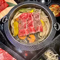 The package we ordered today is the "Royal Buffet" package, which includes unlimited Wagyu beef!!! This is a perfect choice for meat lovers like us. We offer premium Wagyu Momo beef, premium Wagyu sirloin, premium Wagyu Hoba leaf beef, Black Angus exterior, Wagyu brisket, and Australian ribeye. These large, satisfying cuts are incredibly tender and flavorful. Choose your favorite meat! 🥩🥓