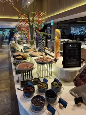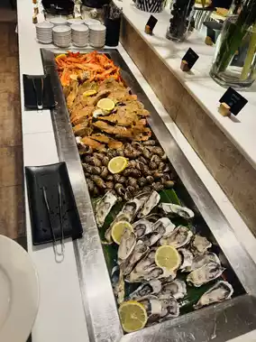 They have everything you need: international cuisine, fresh seafood, sushi, sashimi, Thai dishes, and a wide variety of desserts. You can refill as much as you want, and the taste is truly delicious. The quality is excellent, and the price is unbeatable.