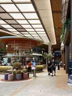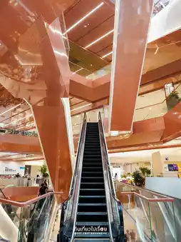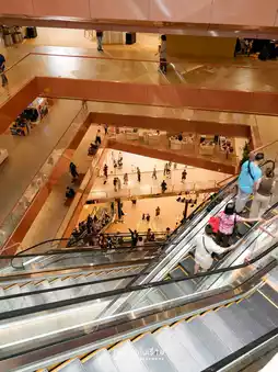 #BangkokAttractions Dusit Central Park: Everyone who visits must take a photo of this angle. The escalator, taken from the first floor, is incredibly crowded right now. Even the restaurants and shops aren't fully open yet. However, the mall layout is easy to navigate. It's not a large mall, and there are multiple escalators. The restrooms are larger and more numerous than any other Central Park. The basement food court is magnificent, with a wide variety of shops, but it's a bit narrow, like an ant colony. There are walkways connecting to both the BTS Sala Daeng Station and the MRT Silom Station.