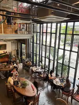 "Baan Saen Saep Cafe," a hidden cafe near Siam, sits on the banks of the Saen Saep Canal. Decorated like you're surrounded by nature, surrounded by trees and flowers, and with live music, you'll feel like you've wandered into a lavender forest. The clean cafe offers a great atmosphere, perfect for those looking to escape the hustle and bustle. Easily accessible, it's near the National Stadium BTS Station (Exit 3). The cafe offers a wide selection of drinks and bakery items. Despite its central location in Bangkok, the prices are reasonable, starting at just 40 baht.