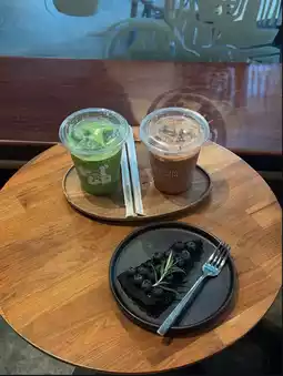 #GetDiscountsWithoutLuck #PiccoloVicoloCafé is a minimalist-style café with a warm and friendly atmosphere. The interior is decorated with stylish hand-drawn glass, creating unique corners and perfect for photos. The interior features wooden furniture and earthy tones, contrasting perfectly with the vibrant greenery of the surrounding trees, adding a refreshing touch to visitors.