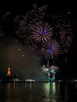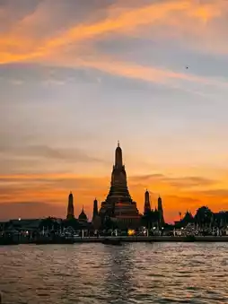 Around 5:30 PM to 6:30 PM is the best time. The sun gradually changes colors from golden yellow to orange-pink before setting below the horizon. The reflection of Wat Arun's prang on the Chao Phraya River is a stunning sight that many people want to see for themselves.