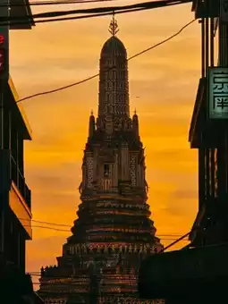 If you're looking for a beautiful sunset in Bangkok, a romantic atmosphere and the charm of the Chao Phraya River, a sunset viewing point at Wat Arun Ratchawararam is the perfect destination.