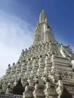 #BangkokAttractions Wat Arun, also known as Wat Chaeng, or Wat Arun Ratchawararam Ratchaworamahawihan, is a temple located on the banks of the Chao Phraya River. It is a popular destination for both Thai and international tourists. No matter when you visit, the temple is always packed with people, and most tourists dress in traditional Thai clothing to take photos. The temple's highlight is the majestic Phra Prang of Wat Arun, decorated with intricate tiles and small ceramics. The prang is especially beautiful when the sunlight shines on it. If you come in the morning or evening, the prang looks even more beautiful. In the evening, when the lights reflect off the prang, it is even more beautiful. #WatArun #Bangkok #Thailand