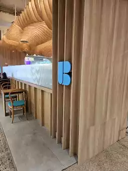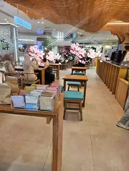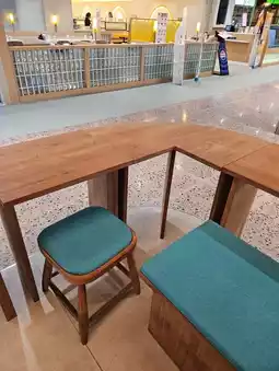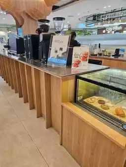 Walk up to the 5th floor in the Urban Balance zone and you'll find a beautiful wooden-toned cafe with a warm, minimalist decor and a playful, wavy ceiling. It's a comfortable place to sit and relax. Although the shop isn't very large, there are plenty of places to chat, chill, or work (with power outlets and Wi-Fi). A little tip: if you come during peak hours, it can get very crowded, so you might have to wait a bit to get a seat.