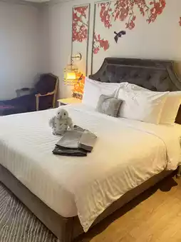 Checking in at the Sari Sukhumvit Hotel in Bangkok, I was captivated by the princess-inspired ambiance as soon as I entered my room. The romantic decor and elegant colors made me feel like I was transported to a fairytale. A white owl plush on the bed was both soothing and adorable, adding a touch of warmth.