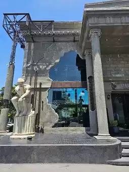 A European-style Roman cafe located on the Ramintra Expressway. The cafe's beautiful and grand design resembles an ancient Roman temple. The spacious space offers plenty of photo opportunities. There's also a large Greek-Roman statue standing proudly inside.