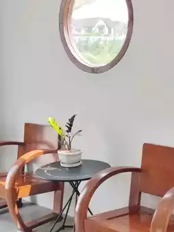 📝: A cafe in Soi Sri Udom, accessible via the alley next to Big C Chaengwattana (near the Government Complex). The cafe's cute decor, a white gabled building, gives it a Khao Yai vibe in the city. The garden area is beautifully decorated. There's a wide selection of delicious drinks and desserts, but no display cases. Parking is convenient.