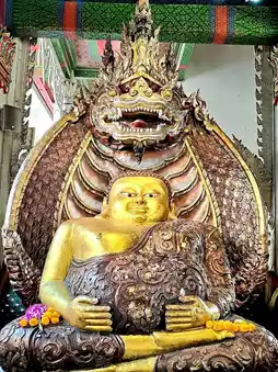 The principal Buddha image in the Naga Prok posture is stunningly beautiful.
