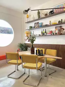 🧸🎀 Super chic cafe~ Located in the Rama 3 area, Sathu Pradit Soi 41. The shop is a modest two-story building, beautifully decorated with a studio feel. The colorful furniture is perfectly arranged. The lighting is beautiful, making for great photos from any angle. The drinks and desserts are delicious. We highly recommend coming here! 💕