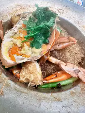 ❤️❤️ Crab vermicelli pot: sesame oil + pepper flavor, vermicelli absorb all the freshness, the portion is not very large, the taste is characteristic but salty, eat a few more bites to feel heavy d.