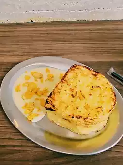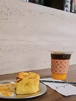 The drink menu offers both coffee and non-coffee options, including a variety of clear teas and matcha. They also have a wide selection of pastries. Today, we ordered the orange coffee and matcha latte. For dessert, we ordered toast with cheese dip. The bread was soft and fragrant.